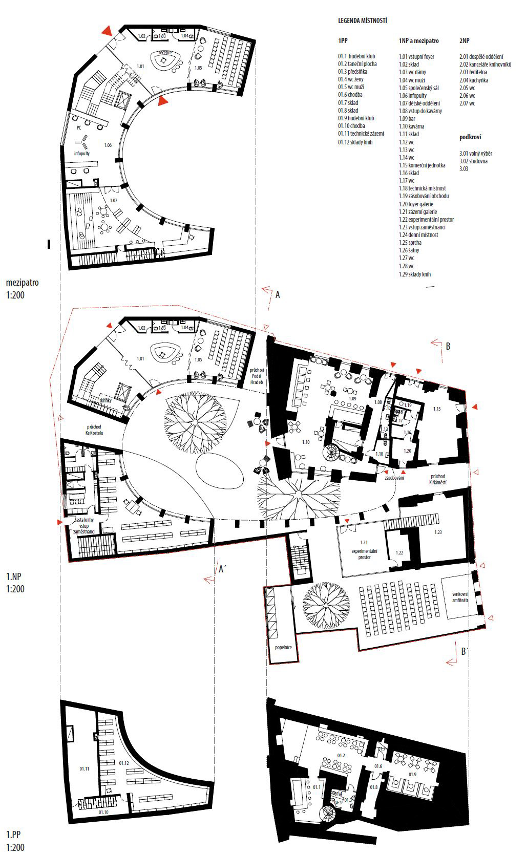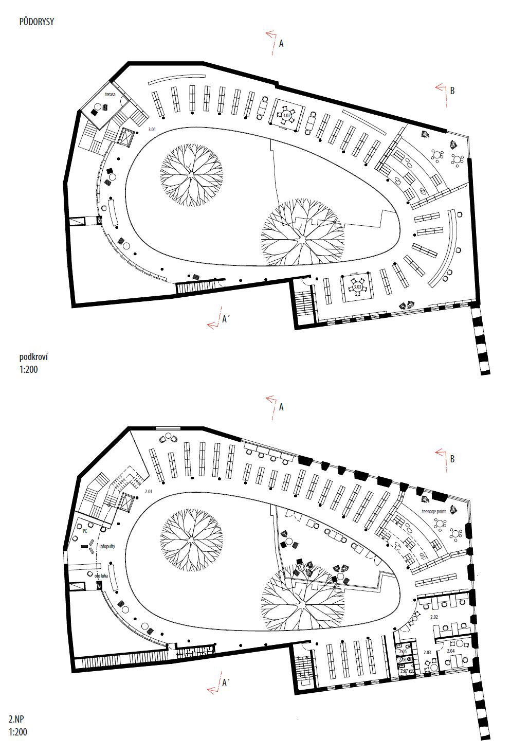 Hlavním záměrem je doplnění městské proluky v atraktivní prostředí společenského a kulturního dění. Z pohledu širších vztahů je důraz kladen na historické souvislosti, odhalení bývalých hradeb a nalézání nových možných tras propojení. Knihovna hrubou skořápkou vnější fasády obepíná měkký zahradní prostor uvnitř. Zahrada za pomyslnou zdí nabízí útočiště před hektickým dnem a prostory pro relaxaci, například na terasách navazujících na otevřený prostor knihovny či v parteru na lavičkách chráněných stínem vrženým arkádami. Venkovní amfiteátr schovaný za kulisou původního domu je multifunkčním místem pro větší společenské akce, v případě změny koeficientu zastavitelnosti pro tuto parcelu by i tento prostor mohl být jednou zastavěn a využit pro plnohodnotný společenský sál. KNIHOVNA ČESKÁ LÍPA / STATUS: veřejná soutěž (2018), postup mezi užší výběr návrhů