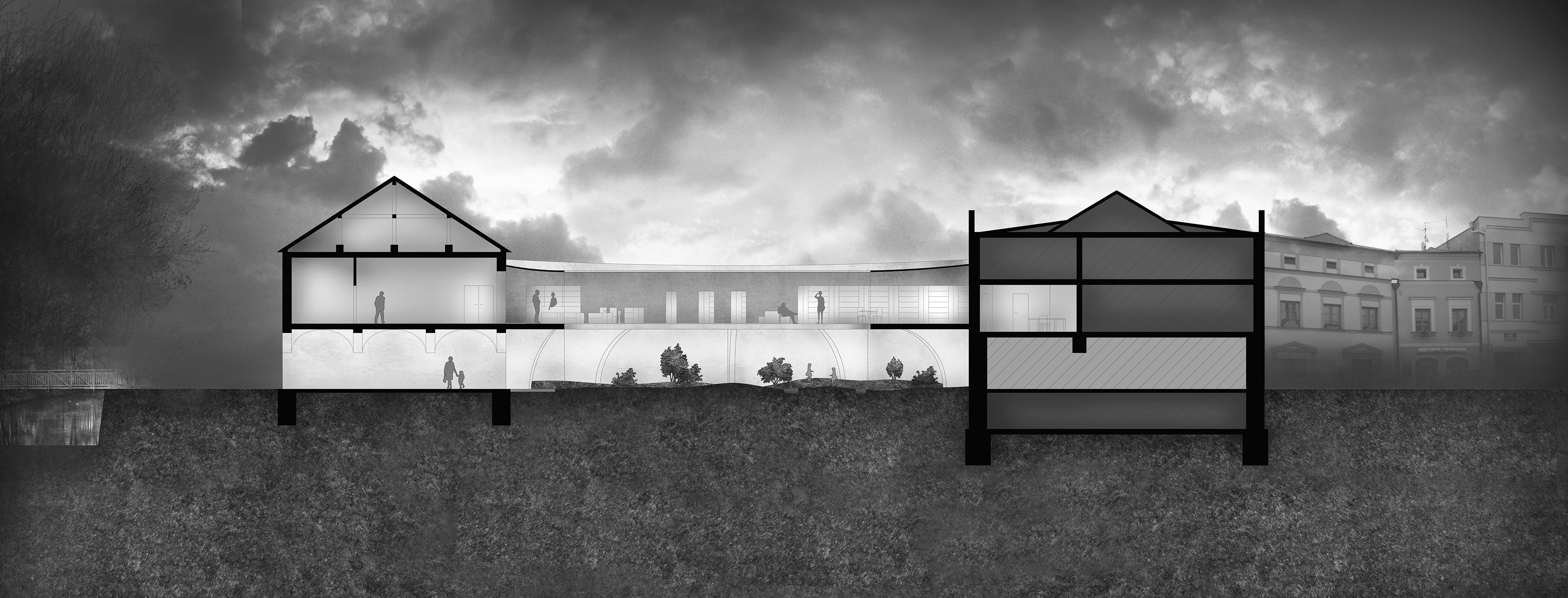 Stávající knihovna v budově bývalé radnice přímo v centru Litomyšle na Smetanově náměstí se nachází ve velmi nevyhovujícím technickém i provozním stavu. Přesouvám ji na nové místo, které navrhuji podle jejích potřeb. Pozemek s domy v jižním cípu Smetanova náměstí je již několik desítek let uzavřený veřejnosti i když tomu v minulosti nebývalo. Vedla tudy cesta. Odlišuje se od ostatních úzkých parcel na náměstí svým rozšířeným dvorem semknutým mezi dvě budovy - Domem U Medvěda k náměstí a budovou puškárny směrem k řece. Tím, jak se pozemek rozšiřuje, vzniká kapkovitý vnitřní prostor. Využití tohoto místa, jeho průchodů budovami i domy samotné jsou příležitostí, jak znovu propojit náměstí s Bělidly a autobusovým nádražím. Zprůchodnění pozemku i stavby se stalo nosnou myšlenkou. Knihovna tak není pouze cílem, ale součástí každodenní cesty k cílům jiným. KNIHOVNA MARTINA KABÁTNÍKA, SMETANOVO NÁMĚSTÍ, LITOMYŠL / VELIKOST: 4000 m2 / STATUS: studie *2.místo v soutěži Young Architect Award *Cena archiwebu za "Inovativní přístup" *Cena Nadace "Nadání Josefa, Marie a Zdeňky Hlávkových"