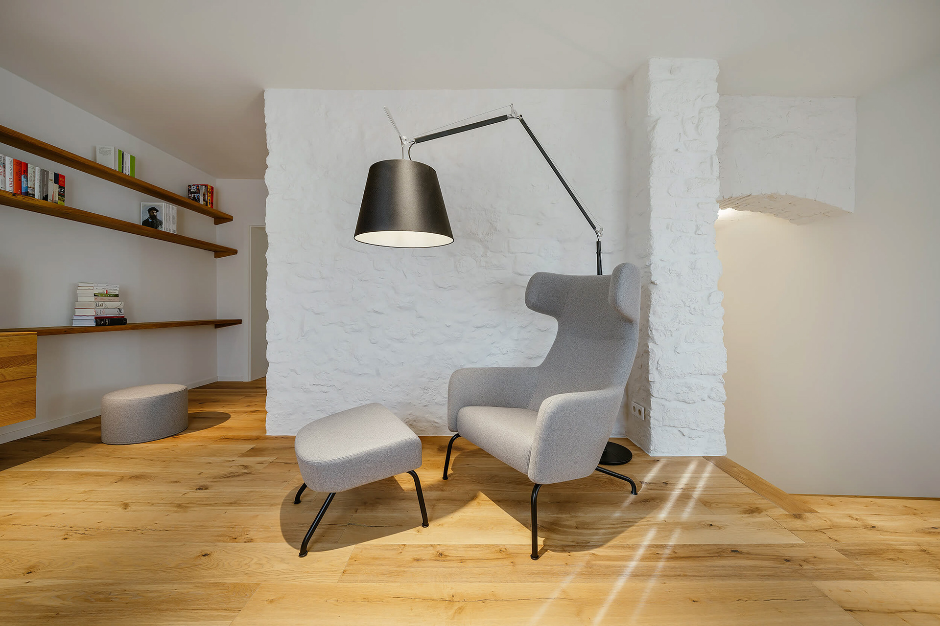 Nový majitel si pro svůj pohodlný víkendový domov vyhlédl dvě stě let starou kamennou chalupu na klidném a krásném místě uvnitř CHKO. Dům se stal druhým domovem i útočištěm, kde se může setkávat širší rodina. Kompletní rekonstrukce interiéru respektuje historický vývoj stavby a její podstatu, nové technologie jsou šetrné a zároveň nekonkurují původnímu duchu stavby. Klient si přál pohodlný víkendový domov mimo ruch města, který bude zcela upraven na míru jeho potřebám, došlo tak ke kompletní rekonstrukci interiéru včetně dispozičních změn a obměně technologií za šetrnější řešení.